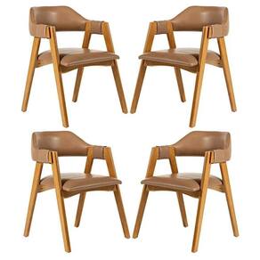 Kit 4 Cadeiras de Jantar Lua Estofada em Madeira Castanho Courino Caramelo L85 Rmi