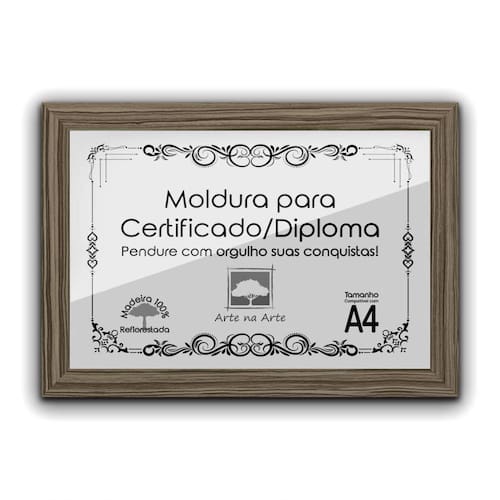 1 Moldura de Certificado/Diploma A4 Com Tela de Acetato e Fundo MDF