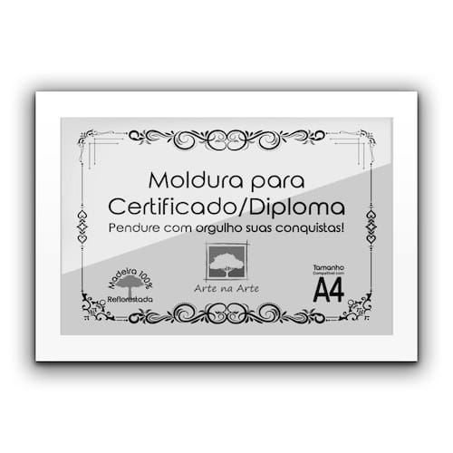 1 Moldura de Certificado/Diploma A4 Com Tela de Acetato e Fundo MDF
