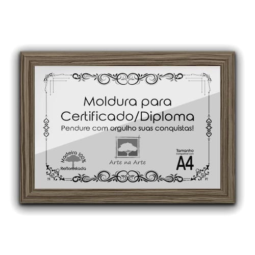 1 Moldura de Certificado/Diploma A4 Com Tela de Acetato e Fundo MDF