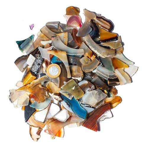 Este pacote contém 1kg de retalhos de Ágata Colorida, provenientes de lapidações naturais. As pedras possuem alto brilho devido ao polimento, embora sejam cacos e retalhos de cortes, com variações de tamanho e cor. São perfeitas para criar orgonites, mandalas, decoração de aquários, jardins de inverno ou qualquer outro projeto criativo. Detalhes do Produto:\nNome das Pedras: Ágata Mista - Diversas Cores\nCores das Pedras: Azul, Rosa, Lilás, Verde, entre outras (Foto ilustrativa)\nClaridade das Pedras: Brilhantes, sem transparência\nCorte das Pedras: Retalho de Lapidação (cacos e pedaços)\nMedidas das Pedras: Variadas de 20mm a 50mm, tamanhos médios, podendo ser maiores ou menores\nPeso Total: Aproximadamente 1kg por pacote\nObservação:\nAs pedras são lavadas em máquinas, podendo conter pequenas impurezas como pedaços de tijolos, concreto ou galhos.\nA separação manual aumentaria o custo do produto, por isso, o pacote contém até 30g a mais como margem de erro.\nCaso precise de pedras específicas, não compre o pacote misto. Consulte compra das pedras individuais.\n  Adquira já e use a versatilidade das Ágatas coloridas para seus projetos criativos!