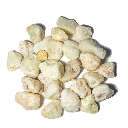 Nome das Pedras: Enxofre Elemento + Quartzo CristalCor: Tom amarelado suave (foto ilustrativa)Corte: Rolado, similar à pedra de rioBrilho/Clareza: Opaco, cristalizadoMedidas: Entre 30mm a 45mm (podem variar)Peso: Pacote de 1kgQuantidade: Mais de 25 pedras por pacote (aproximadamente)Origem: Lapidação Cristais de Curvelo, MGObservação: Foto do lote à venda (ilustrativa)