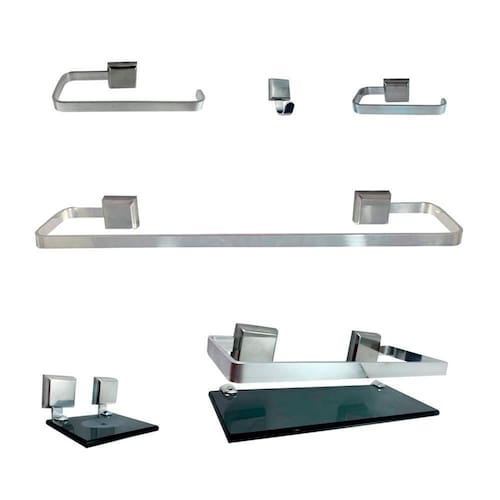 Dimensões dos Produtos Porta toalha de banho 42 cm Porta toalha de rosto 17 cm Papeleira 14 cm Cabide 7 cm Saboneteira 10x12 cm Porta shampoo 10x25 cm