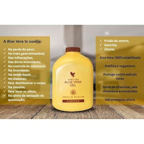 Suco concentrato de aloe vera 100 natural1 litro galãoAlimento funcional Auxilia sua saude de dentro para fora com os beneficios da babosa Marca: Forever Living