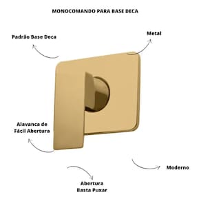 KIT Acompanha: 01 ALAVANCA SLIM MONOCOMADO 01 FIXA CANOPLA MONOCOMADO 01 CANOPLA MONOCOMADO 01 PARAFUSO ALLEN 02 ACABAMENTO BARCELONA DOURADO FOSCO TODO METAL