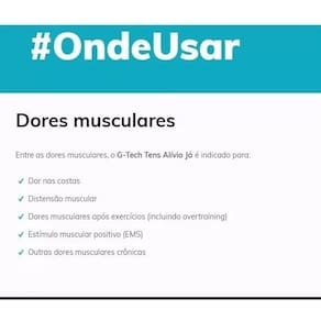 Gel de Reposição para Tens Alivio Já G-tech Regiões onde não se deve usar o produto:O produto não deve ser aplicado sobre:- A artéria carótida (região lateral do pescoço),- Na região anterior do pescoço (nuca),- Na região frontal da cabeça (testa e face),- Sobre as mamas,- Nas regiões íntimas e sobre feridas abertas.Seu uso também é contraindicado em pacientes portadores de marcapasso, em partes do corpo que tenham próteses metálicas e durante a gravidez (a segurança da estimulação elétrica em grávidas não está estabelecida). Conteúdo da embalagem:1 par de Gel condutor adesivo