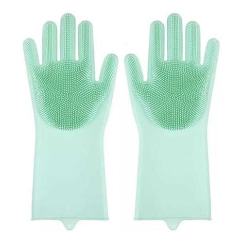 1 Par De Luvas Esponja Lava Louça De Silicone Produto: par de Luvas Esponja Lava Louça de Silicone Marca: Your Cor: Verde Claro Material: silicone Medidas: 13,5cm x 27cm x 1cm