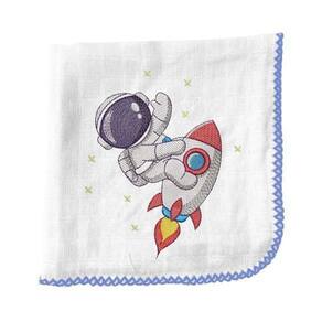 1 Pç Fraldinha De Boca Bordada 33X33Cm Com Crochê Azul