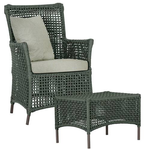 1 Poltrona e 1 Mesa Igapó em Alumínio Pintura Marrom Corda Náutica Estofado 3 - Verde