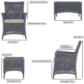 1 Poltrona e 1 Mesa Igapó em Alumínio Pintura Preta Corda Náutica Estofado 7 - Prata