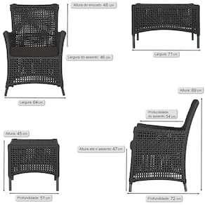 Itens Inclusos: 01 Poltrona e 01 Mesa Igapó em Alumínio Pintura Preta Corda Náutica Estofado 9