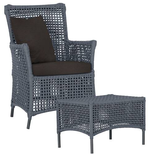 Itens Inclusos: 01 Poltrona e 01 Mesa Igapó em Alumínio Pintura Preta Corda Náutica Estofado 9