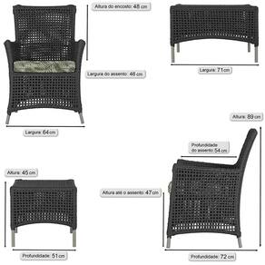 1 Poltrona e 1 Mesa Igapó em Alumínio - Preto
