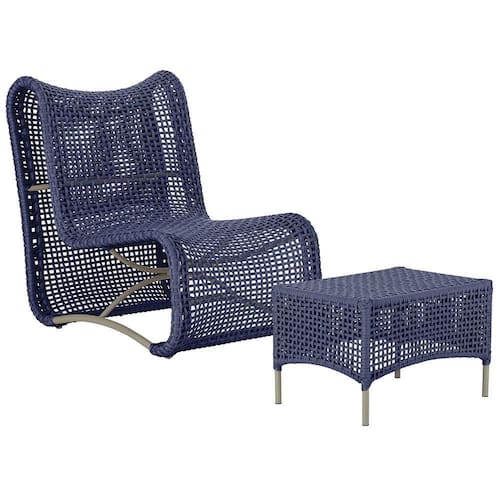 1 Poltrona E Mesa Texas Alumínio Fendi Corda Náutica Trama Azul
