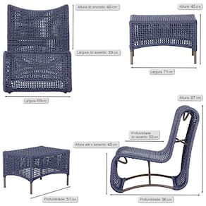 1 Poltrona E Mesa Texas Alumínio Marrom Corda Náutica Trama Azul