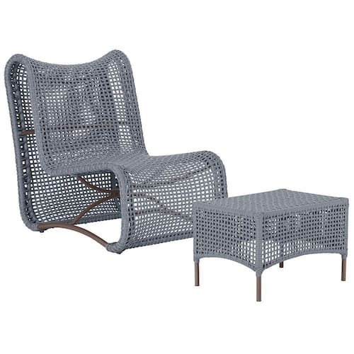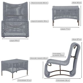 1 Poltrona E Mesa Texas Alumínio Marrom Corda Náutica Trama Prata