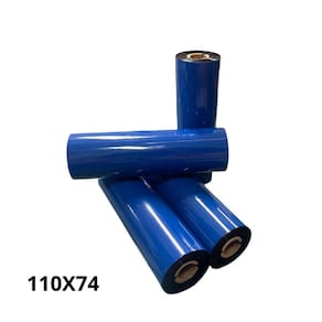 Ribbon/fita mista cera/resina Cor de impressão: preta Largura: 110 mm Metros: 74m Diâmetro interno tubo: 0,5 12,7mm Fabricante: thermo label
