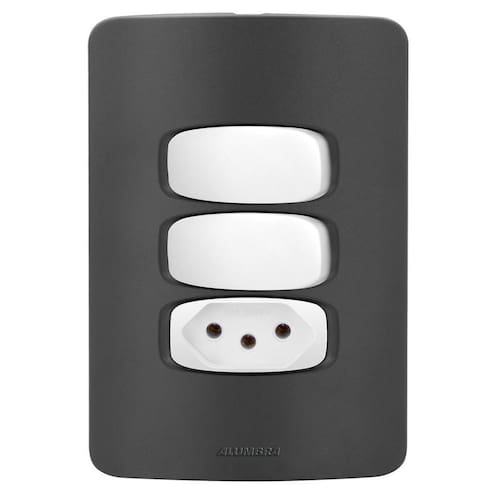 Alumbra gracia - placa black maxx / módulos brancos / interruptores e tomadas conjunto completo desmontado com: 1 módulo de interruptor 1 módulo de interruptor simples 1 módulo de tomada 10a 1 placa para 3 módulos 4x2 1 suporte 4x2 2 parafusos cor: preto para montar é apenas um click, apenas encaixar