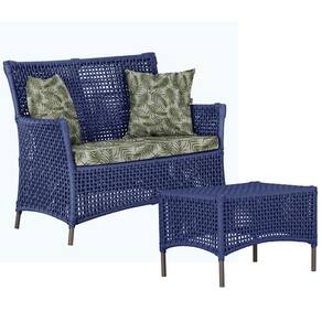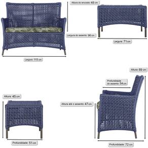 1 Sofá Área e Mesa Igapó Alumínio Pintura Marrom Corda Náutica Estofado Impermeável Almofada 5 Trama - Azul