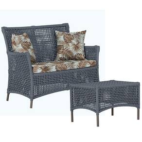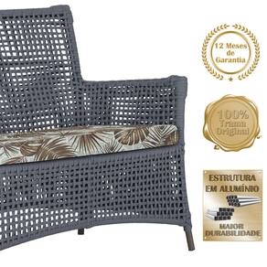 1 Sofá Área e Mesa Igapó Alumínio Pintura Marrom Corda Náutica Estofado Impermeável Almofada 6 Trama - Prata