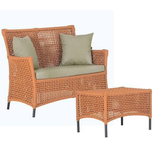 1 Sofá Área e Mesa Igapó Alumínio Pintura Preta Corda Náutica Estofado Impermeável Almofada 7 Trama - Laranja