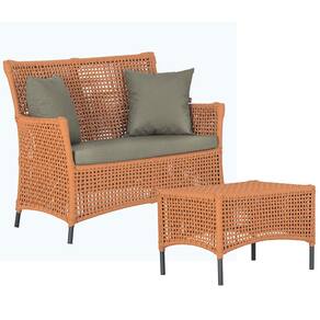 1 Sofá Área e Mesa Igapó Alumínio Pintura Preta Corda Náutica Estofado Impermeável Almofada 8 Trama - Laranja