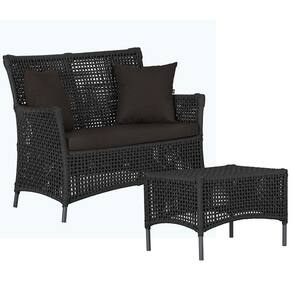 1 Sofá Área e Mesa Igapó Alumínio Pintura Preta Corda Náutica Estofado Impermeável Almofada 9 Trama - Preto