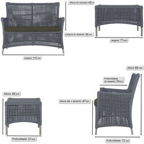 1 Sofá Área e Mesa Igapó Alumínio - Prata