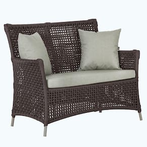 A corda nautica adiciona um toque de rusticidade moderna, enquanto o estofado impermeavel garante que sua Sofa esteja sempre impecavel, mesmo apos uma chuva inesperada ou um acidente com liquidos.