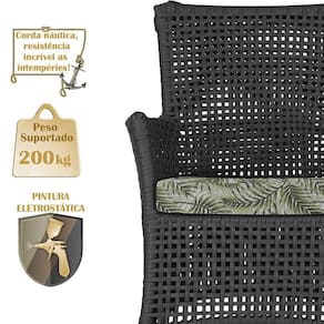 1 Sofá área Externa Igapó Alumínio Fendi Corda Náutica E5 Preto