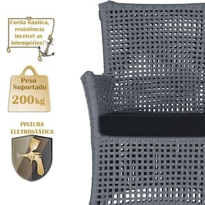 A corda nautica adiciona um toque de rusticidade moderna, enquanto o estofado impermeavel garante que sua Sofa esteja sempre impecavel, mesmo apos uma chuva inesperada ou um acidente com liquidos.