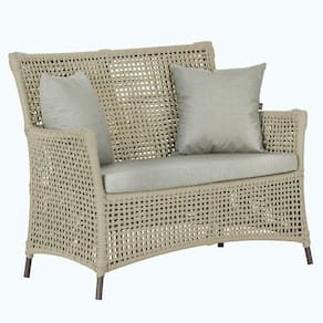 A corda nautica adiciona um toque de rusticidade moderna, enquanto o estofado impermeavel garante que sua Sofa esteja sempre impecavel, mesmo apos uma chuva inesperada ou um acidente com liquidos.