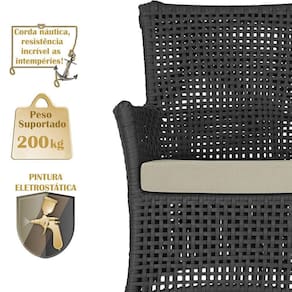 A corda nautica adiciona um toque de rusticidade moderna, enquanto o estofado impermeavel garante que sua Sofa esteja sempre impecavel, mesmo apos uma chuva inesperada ou um acidente com liquidos.