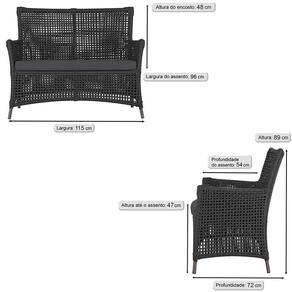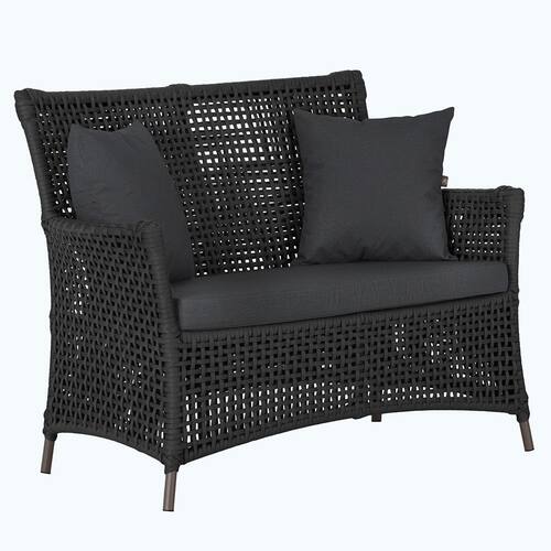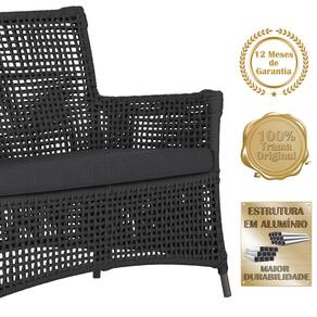 1 Sofá Área Externa Igapó Alumínio Pintura Marrom Corda Náutica Estofado Impermeável 11 - Preto