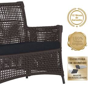 1 Sofá Área Externa Igapó Alumínio Pintura Preta Corda Náutica Estofado Impermeável 12 - Marrom Chocolate