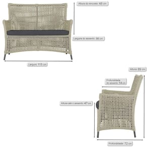 Itens inclusos: 01 Sofa Area Externa Igapo Aluminio Pintura Preta Corda Nautica Estofado Impermeavel 11