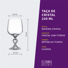 TAÇA DE CRISTAL PARA VINHO TINTO COM 230 ML DA LINHA CLAUDIA BOHEMIA CRYSTAL