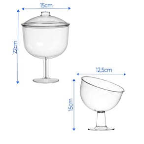 1 taça tropical 1,3 com tampa + 1 taça incl peqDescrição:Produto indicado para quem não abre mão de praticidade para servir e limpar.Acrílico cristal é premium qualidade superior- produto de qualidade premium superior;- super resistente porque foi feito para durar;- muito mais fácil de limpar e super prático para servir;- acabamento de alto brilho com design moderno; - indispensável em casa, ideal para comércios, festas, eventos e buffets. muito utilizado por profissionais Sucesso comprovado, quem utiliza aprova e recomendaCuidados:Não colocar no freezer, não utilizá-lo no micro-ondas.Não suporta altas temperaturas como panelas etc...Características:Taça tropical acrílico com tampaAltura: 18cmAltura com tampa: 22cmBase: 7cmDiâmetro: 15,5cmDiâmetro boca: 15cmCapacidade:1,3litrosTaça inclinada peq.Altura: 15cmDiâmetro: 12,5cmPeso: 84gCapacidade: 400mlConteúdo:- 1 x unidade de taça tropical com tampa - 1 x unidade de taça inclinada pequenaCód: 3t00447Cod: 3t00403Sku:tb004927