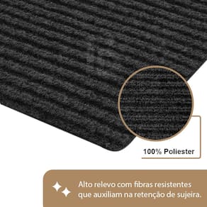 VANTAGENS - Superfície em alto relevo, retém a sujeira; - Fibras resistentes, não solta pelos; - Base antiderrapante; - Evita tropeços, não levanta as pontas; - Material firme e pesado, não sai do lugar; - Antimofo, pode molhar; - Alta qualidade e durabilidade; - Multiuso: ambientes externos e internos; - Super fácil de limpar. CONTÉM: 1 unidade(s) COR: Grafite DIMENSÕES - Largura: 40cm - Comprimento: 60cm MATERIAL - Superfície: 100% Poliéster - Base: 100% PVC SUPER FÁCIL DE LIMPAR - Limpeza Leve: Sacudir o tapete ou utilizar o aspirador em pó. - Limpeza Pesada: Lavar com água e sabão neutro. Um produto Idealiza Comércio de Utilidades. Marca: Não Informado