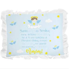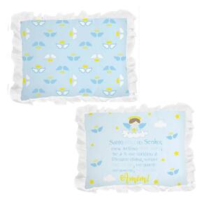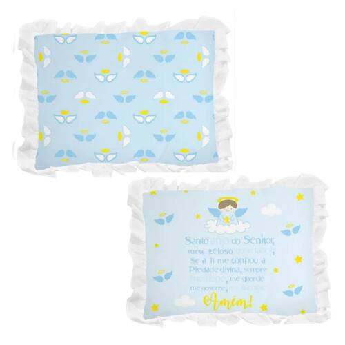 Principais Características: Contém 1 Travesseiro com babado Tamanho: 28x35cm Idade: A partir do primeiro dia de vida Tecido confeccionado em 100% algodão Enchimento 100% poliéster Cor: Azul bebê