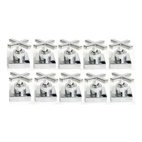 10 Hastes (cruzeta) com 3,5cm. x 3,8cm. FABRICADA EM METAL (LATÃO CROMADO) 10 Bases com 5cm. x 5cm. FABRICADA DE ABS CROMADO