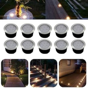 10 Luminárias Balizadores Spot Led SMD Em PVC De 7W Luz Branco Quente De Embutir Em Piso Chão Solo Gramado Jardim Escada