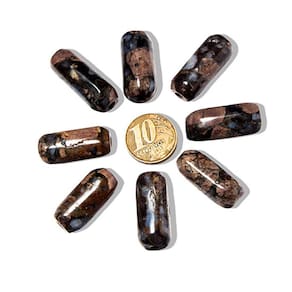 Pedra Riolita Rosa Barril Furado Longitudinal 25 a 30 mm – Ideal para Montagens de Colares, Pulseiras e Artesanato Transforme suas criações artesanais com a Pedra Riolita Rosa Barril Furado Longitudinal. Essa pedra única, com tons de rosa suave e padrões naturais, traz uma energia equilibrante e uma beleza diferenciada para colares, pulseiras e outros acessórios. Sua furação longitudinal facilita a montagem de peças personalizadas, unindo praticidade e estilo. Características do Produto: Nome: Riolita Rosa Natural Cor: Rosa suave com padrões marrons e brilho sutil (foto ilustrativa) Formato: Barril rolado com furo longitudinal (3 mm aprox.), ideal para fios e cordões Claridade: Semitransparente com brilho vítreo delicado Medidas: 25 a 30 mm (pode variar conforme o lote) Quantidade: 10 unidade Benefícios da Riolita Rosa: A Riolita Rosa é uma pedra conhecida por suas poderosas propriedades de cura emocional e renovação. Ao utilizá-la em suas criações, você traz um toque de amor e equilíbrio para os acessórios, fazendo com que cada peça carregue uma vibração única e tranquila. Aplicações e Usos: Ideal para joalheiros, artesãos e entusiastas do artesanato, a Pedra Riolita Rosa Barril Furado é perfeita para colares, pulseiras e pingentes que se destacam pela autenticidade e conexão com a natureza. Sua versatilidade permite criar desde designs casuais até composições sofisticadas. Destaques: Fotos Ilustrativas: As cores e padrões das pedras podem variar devido às características naturais. Tempo de Processamento: Devido ao processo de lapidação e furação artesanal, o envio pode demorar entre 3 e 15 dias. Por que Adquirir a Riolita Rosa? Exclusividade: Cada pedra tem variações únicas, garantindo peças exclusivas. Versatilidade: Perfeita para diversos estilos de montagens, oferecendo um toque de frescor e sofisticação. Propriedades Energéticas: A Riolita Rosa promove cura emocional e equilíbrio, sendo ideal para quem deseja incorporar essas energias nas suas criações de joias. Adicione ao seu carrinho e crie peças com a energia curativa e a beleza natural da Riolita Rosa! Marca: CristaisdeCurvelo