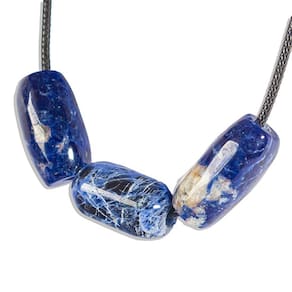 Pedra Sodalita Azul Barril Furado Longitudinal 20 a 25 mm Tipo B - Para Montagem de Artesanato A Sodalita Azul é uma pedra natural, lapidada em formato de barril, com furo longitudinal (horizontal) de aproximadamente 1 mm de espessura, ideal para montagem de colares, pulseiras, guias e pingentes. Esta pedra não vem montada em colar — é fornecida individualmente, pronta para seus projetos de artesanato. Características do Produto: Nome da Pedra: Sodalita Azul Cor: Azul com veios brancos (foto ilustrativa) Formato: Barril rolado, com furo para passagem de fios Claridade: Brilhante, com aspecto vítreo cristalizado Tamanho: Varia entre 20 a 25 mm (de acordo com o estoque) Quantidade: 10 pedras por pedido Observações Importantes: A foto é meramente ilustrativa, podendo haver variações na coloração e textura devido à luz do estúdio e ao processo natural da pedra. Devido à alta demanda, o prazo de lapidação e furação pode variar entre 3 a 15 dias. Compre apenas se concordar com este prazo. Ideal para: Criação de joias e acessórios artesanais Montagem de colares, pulseiras e pingentes personalizados Adquira a sua pedra de Sodalita Azul e adicione um toque natural e elegante aos seus projetos! Marca: CristaisdeCurvelo