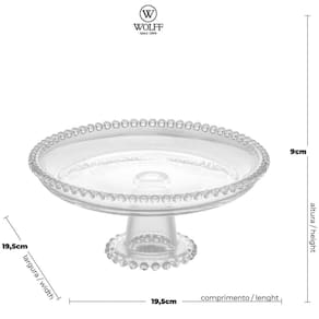 Garantia: 90 dias / Peso total: 6,18kg / Cor predominante: cristal / Referência: 7794463324096; Dimensões totais de cada boleira: 20cm (D) x 9cm (A); Dimensões do pé: 7,5cm (D) x 6,5cm (A); Conteúdo: 10 boleiras de cristal; Material: cristal;