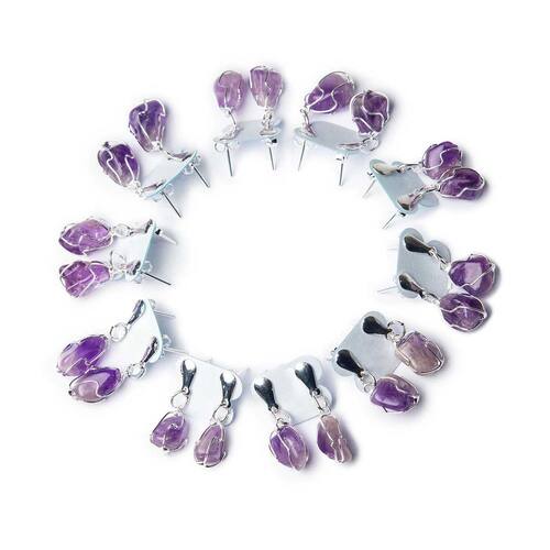 10 Brinco Cesta Amarrada Pedra Ametista Prateado