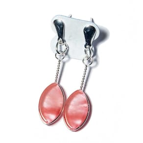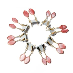 Brinco Pedra Cherry Rosa Lapidado Navete com Acabamento Folha – Prateado Artesanal Adicione um toque de delicadeza e sofisticação ao seu look com o Brinco Pedra Cherry Rosa!