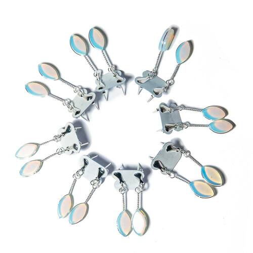 Pedra: Pedra da Lua Opalina, com tonalidade branca opalada que reflete delicadamente a luz. Corte: Lapidação Navete, cuidadosamente feita à mão para destacar sua forma e brilho. Claridade: Semi-brilhoso, oferecendo um toque suave e encantador de luminosidade. Medidas: