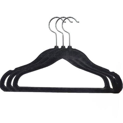 Design ultra fino, maximiza o espaço no armário. Com textura totalmente em veludo preto; Curvas delicadas que conservam o formato das roupas; Por terem a textura aveludada, as roupas não escorregam; Cabide com 44,5cm de largura x 23cm de altura x 0,5cm de espessura; Cabides com hastes em aço cromado.