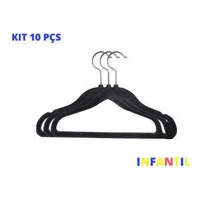 10 cabides veludo infantil slim bebê kids calça jeans Cor: bege Descrição Kit com: 10 cabides de veludo preto infantil slim tradicional anti deslizante